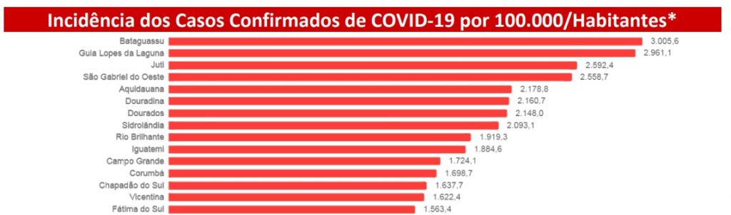 Aquidauana totaliza 3.763 notificações referentes ao novo coronavírus, com 2.441 descartes. São 1.043 confirmações da doença, divididas em 31 mortes (17 indígenas), 523 casos ativos e 489 pessoas recuperadas. A incidência, que leva em conta a proporção de infecção por Sars-CoV-2 em um raio de 100 mil habitantes, já é a quinta maior de Mato Grosso do Sul.