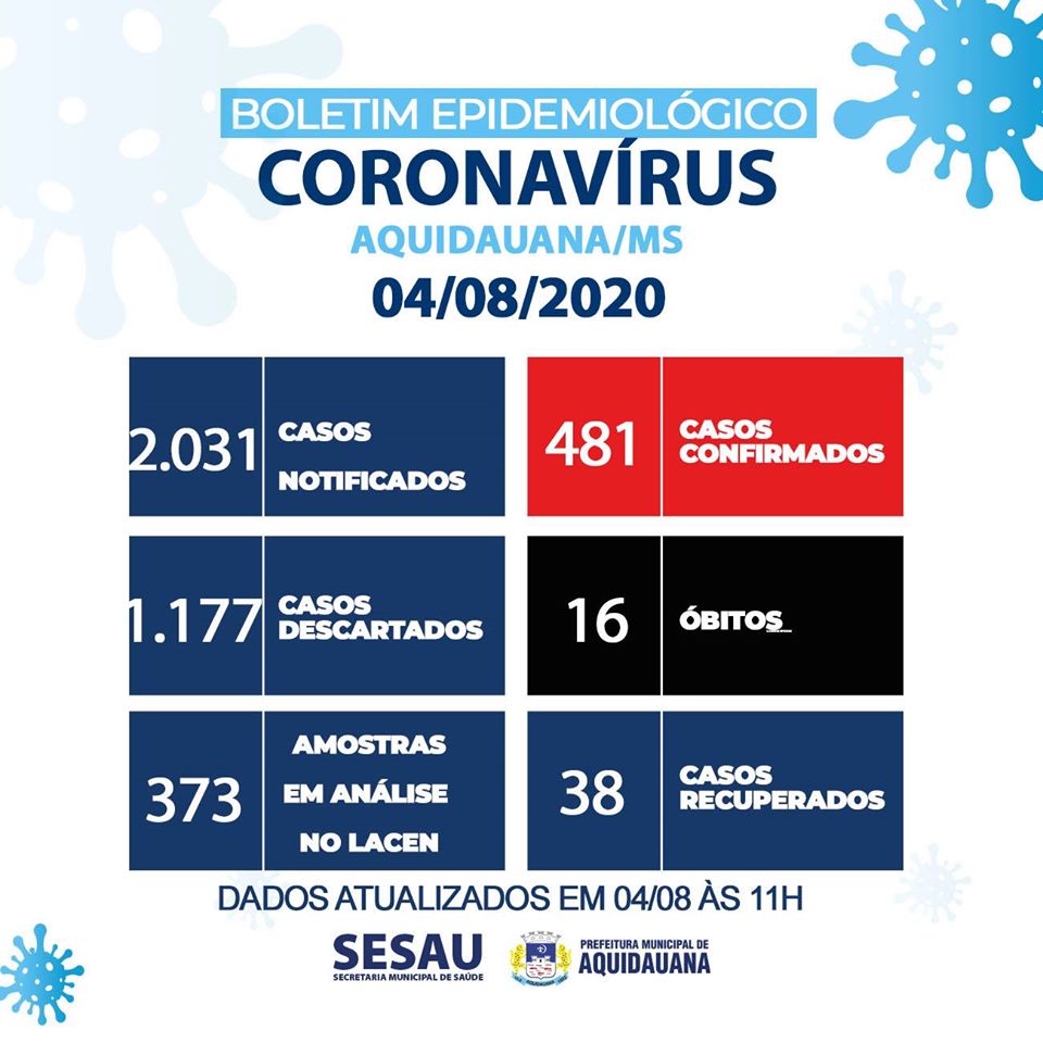 A 16ª vítima que não resistiu à doença é um homem, 58 anos, morador da zona urbana. O diagnóstico de Covid-19 foi no dia 20 de julho. Ele estava internado em um hospital de Campo Grande e teve complicações. O óbito ocorreu nesta segunda-feira (03).